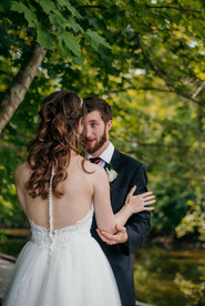 After everyone was ready, it was time for Abby & Andrew to have their first look. Andrew and I headed out to the location first (or so we thought) and waited for Abby and Amanda to get there so that we could set up and get everything ready. What Andrew and I didn't know was that we had a smalllll miscommunication and we were on the completely wrong dock on the opposite side of the park. Oops! After a quick phone call & iPhone location pin drop, we were back on track and ready for the real first look. Abby had chosen an absolutely perfect spot on a dock overlooking a lake. Once we set Andrew up, we brought her out from hiding and let the magic that's captured in these photos unfold. It was honestly such a beautiful moment that I know these two will cherish in the years to come.