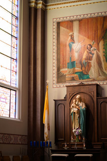 I started my afternoon off by meeting Bridget & her bridesmaids as they were finishing up getting ready. They had the cutest matching pajamas that we took photos in before Bridget got into her dress. This dress was absolutely STUNNING and was beyond perfect for Bridget! We also took some bridal party & family photos before it was time to head to the church!
