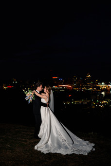 After the ceremony, it was time for portraits! We took a few photos of Bridget & Louie together outside of the church before heading back inside for family photos (but those are for Bridget & Louie to share with you!) After finishing up with bridal party photos, it was time to head to Drees Pavilion! Once we arrived, we took a few photos in the dark with the gorgeous view of the city lights from downtown Cincinnati in the background. These ended up being some of my favorite photos from the entire day!