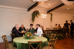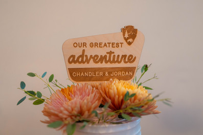 After portraits, it was time for the ceremony! The River Place has a GORGEOUS ceremony space with a beautiful mountain view. Jordan’s face absolutely lit up seeing Chandler walk down the aisle towards him and it was absolutely precious. They did a sand unity ceremony and then shared their own personal vows and the entire ceremony was so sweet. Once they shared their first kiss, they headed back down the aisle as their friends & family cheered and threw flower petals towards them, how fun!