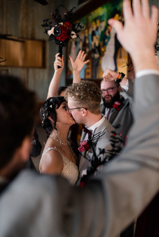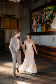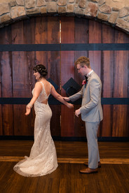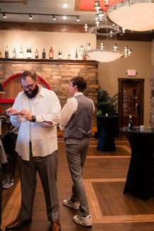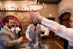 After everyone was ready, it was time for Eric & Emily to have their first look! This was the sweetest moment and such an honor to witness & capture! Eric and Emily were both bubbling with excitement and had the sweetest reactions to seeing one another for the first time. Emily even took a full circle around the room so that Eric could see how absolutely incredible her dress was. After they shared their moment together, we went straight into taking portraits of the two of them together in the pub, around the venue, and in the wine cellar at Jungle Jim’s! We were able to get so many fun & unique photos of the two of them together and I love the variety of images they now have in their wedding gallery!