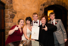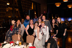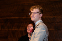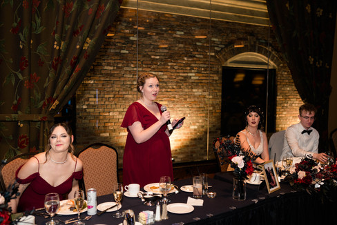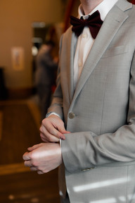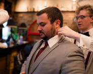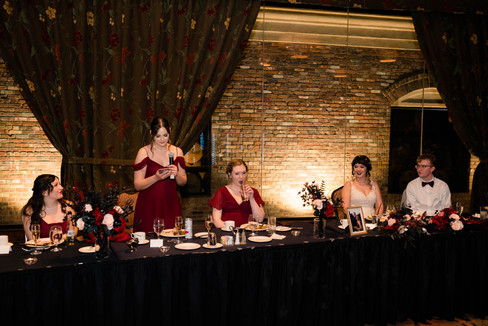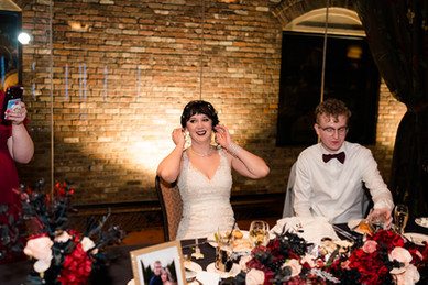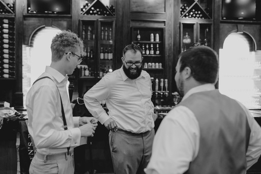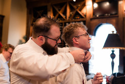 While I was with Emily and her girls, my incredible second shooter Sam was with Eric & his guys. They were hanging out in The Oscar Event Center’s pub space and setting up all the final details in the reception hall. Everything came together perfectly and I love the dark accents with the pops of red that Emily & Eric chose. From the looks of it, the guys had a great time hanging out and getting ready!