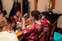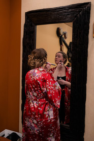 When I arrived at The Oscar Event Center I met Emily & her bride tribe in the bridal suite. We were laughing & listening to music as everyone got ready and it’s so obvious that Emily has such an incredible group of friends who spent the morning loving on her and celebrating such a big day with her. Their matching kimonos were so fun and cute and I love how they really popped in these photos. Emily looked absolutely STUNNING in her dress and all of her jewelry details really brought her look together!