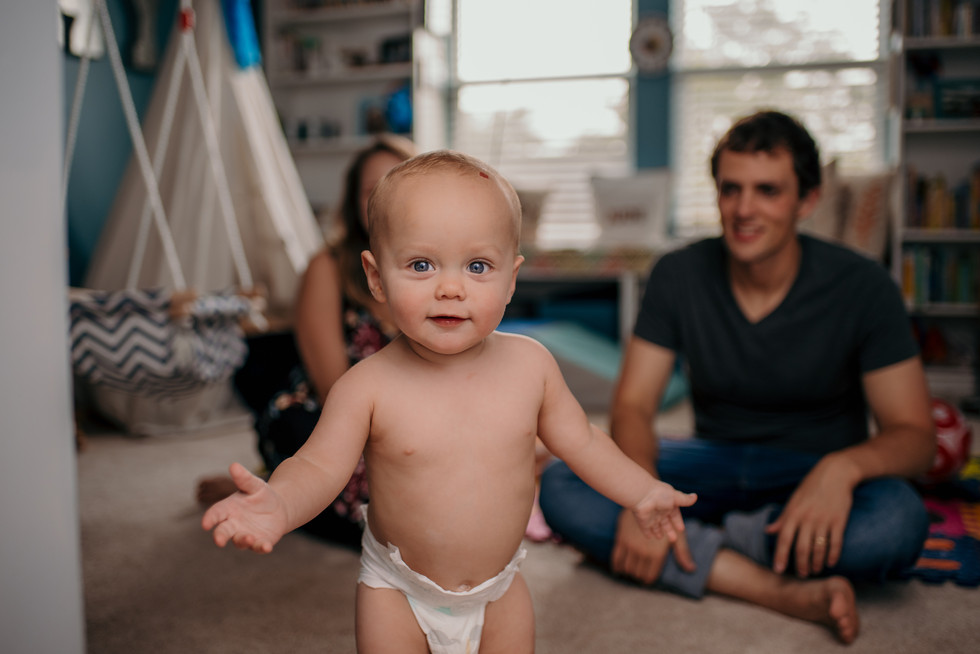 Because of the rain, we decided to finish up photos inside. Alex & Jordan's house is like a dream. So perfectly decorated AND filled with photos. It warms my heart to see so many shots that I've taken over the years proudly displayed on their walls. Jordan joked that she's not sure what milestone comes after Jude's first birthday because she's running out of wall space to hang more photos on! Haha! Even though Jude LOVED playing with his two favorite people in his playroom, his favorite part of his session was probably this next part, being able to get as messy as he wanted while eating a cupcake, yummmm!!