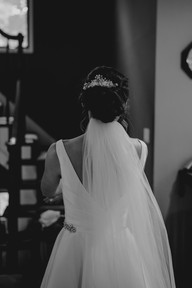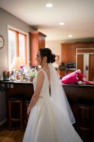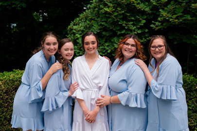 I started my morning off by meeting Libbey & her bridesmaids at her parents’ house. Everyone laughed and chatted while they finished up getting ready and once all of her bridesmaids were hidden away, Libbey started getting into her dress for a first look with them. At this point, Libbey & her mom were the only people who knew what Libbey’s dress looked like. They had gone shopping together and fell in love with THE dress and since her bridesmaids weren’t there to see it in person, Libbey decided it would be fun to wait and have a reveal with them on the day of the wedding. This moment was SO sweet and I loved all the genuine reactions to not only seeing Libbey as a bride, but also to seeing THE dress for the first time! Once this first look was done, we took a few photos before heading to the church!