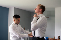While I was with Libbey & her bridesmaids, my incredible second shooter Sam was spending the morning with Blake & his groomsmen. From the looks of it, they also had a fun morning! Once they were all ready, they spent some time hanging out in the backyard and taking a few fun photos before heading off to meet us at the church!