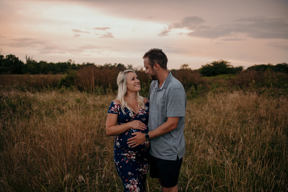 Madison had been dreaming of a golden hour maternity session & we chose one of my favorite go-to locations that always has a gorgeous sunset. Unfortunately, a few hours before our session the storm clouds rolled in & we knew we weren't going to get our perfect golden hour. Even though it was pretty cloudy, the weather had cooled off just enough for us to be comfortable and I think that their photos turned out beautifully. I've worked with Madison & Jake on numerous occasions now and they're always so happy & positive regardless of the situations thrown at us. Their maternity photos came out so moody and filled with love and I know that they'll treasure them for years to come.