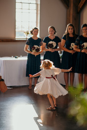 After everyone was ready, we all headed to the ceremony. The setting sun poured into the big open windows as a nice summer breeze flowed through the barn. Sarah & Tyler's friends and family gathered to watch the two officially come together as husband and wife and the entire ceremony was absolutely beautiful. The flower girls twirled as Sarah's stepmom sung a special song and everything finally came together perfectly. After the two exchanged rings and sealed the ceremony with a kiss, they proudly walked back down the aisle together before heading outside to completely just embrace one another. Out of all of the wonderful moments I get to capture throughout a wedding day, this one is always one of my favorites. It's completely unscripted and SO full of love and happiness. The very first embrace as husband and wife. A moment packed with emotion and admiration. Complete joy. I love it.