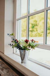 A few weeks ago, Sarah & Tyler tied the knot at The Maulhauser Barn in West Chester, Ohio. I had never been here before, but it was absolutely GORGEOUS. We were blessed with a beautiful sunny Friday and the temperature was perfect. Not too hot, not too cold. I started the afternoon off by meeting Sarah and her bride tribe to capture the joy & anticipation they all had for the rest of the night as they got ready together in a nearby hotel. Everyone was just SO nice and thoughtful and and I LOVED the navy blue & maroon robes that Sarah had chosen to get ready in. Sarah's dress was truly one of a kind and absolutely perfect for the day. The details in it's beading, the arrangement of the flowers, and the happiness of the bride started the afternoon off to such a great start.