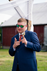 While I was inside the house with Taylor & her girls, my incredible second shooter Sam was outside in the barn with Brian & his groomsmen. From the looks of these photos, they had the best time drinking and hanging out before getting dressed and ready for photos! Brian got his groomsmen the COOLEST personalized gifts and Sam was able to get the only set of photos that Brian requested on his shot list: the beer run! These photos show how much fun these guys had and I loved being able to go back through them and laugh as I was editing them!