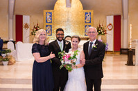 Our Lady of Mt Carmel Church is so incredibly beautiful and I always love the photos I’m able to take there. Gean had the absolute SWEETEST reaction to seeing Theresa walk down the aisle towards him (I melted!) and the two of them together were just bubbling with happiness. After the ceremony they had a bubble send off while exiting the church before greeting their guests. This was such a fun touch and I love how these photos turned out. Gean and Theresa both look so happy and I love that you could also see the joy on all of their family & friend’s faces as well. After the bubble exit we headed back into the church to take a few family photos!