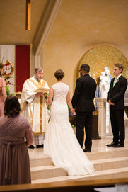 I started the day off by making the trip from Cincinnati to Carmel and the perfect weather let me know that it was going to be an incredible day. Theresa and her bridesmaids were laughing while getting ready while Gean and his groomsmen were hanging out and playing cards in the basement below them. There was plenty of food to go around and it was so nice for each side of the wedding party to have their own space to spend the morning relaxing! Theresa had the cutest set of white heels and wore jewelry passed down throughout the years from her family. Her dress looked as if it was absolutely made for her to wear and she and her bridesmaids spent the day before organizing and putting together all of their own bouquets (how special! Plus, those COLORS?! My heart!) The Spech’s family dog, Gracie, wondered throughout the house happily greeting whoever looked her way. After Theresa’s mom and grandma helped her get into her dress and add her final accessories, we were on our way to the church!