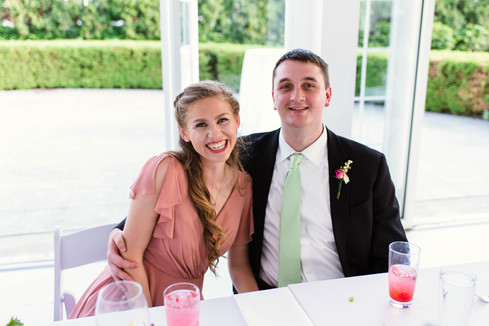 Since the pandemic provided so many travel restrictions and border closures, Theresa and Gean went through a lot to get Gean back into the states. Because there was so much uncertainty surrounding this, all of their details came together quickly once they got the go ahead. Up until a week or two before the wedding, the plan was for the reception to be held at Theresa’s parents’ house. At the last minute, they let me know that they managed to find a venue and passed along the address to me. I didn’t think much of it beforehand, but when I arrived at their new reception location, I can assure you that my jaw DROPPED. The Ritz Charles Garden Pavilion is an all glass building surrounded by gorgeous gardens. The all white space (and gorgeous ceiling drapery) were any photographer’s dream and I absolutely LOVE all of these reception photos. The space was truly incredible and I loved every moment spent here. Theresa & Gean had the cutest first dance, sweetest cake cutting (Gean told Theresa that they didn’t cut enough cake because he wanted a full piece to eat! How funny!), speeches from their bridal party, and a great night of laugher, memories and dancing. Since Gean’s family wasn’t able to make it to the wedding, we were able to get a few photos with pictures of them in frames since they definitely weren’t forgotten on such a special day.
