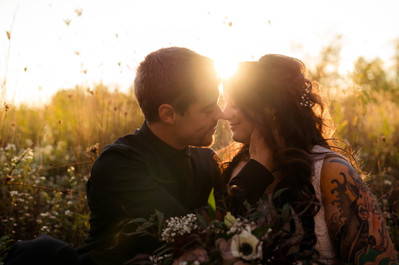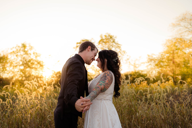After the ceremony we technically went back down to the barn to kick off the reception, but I'm going to wait to share those photos with you until the end of today's blog. Instead, I'd rather show you the dreamiest golden hour photos we took right after dinner . . . I am absolutely OBSESSED with all of these photos and am so thankful that Tracie & Tyler trusted me and wanted to leave their party to get just a fewwww more photos in. Not only were they up for running through the fields, but also totally down for sitting down and getting cozy in the tall grass. These two are always such a DREAM to work with!!