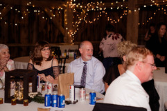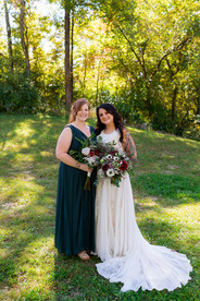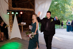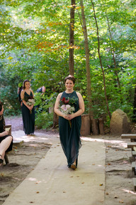 After all of the bridal party portraits were taken, it was time to hop on a golf cart and head up to the ceremony! Canyon Run Ranch has a gorgeous little ceremony spot in the middle of the woods. The benches & alter arch bring the space together and make this rustic woodsy wedding theme into a dream come true. Their DJ, Nikki (with Biller Entertainment) started the ceremony music when the bridal party started down the aisle. As they were walking, the speaker went out. Instead of pausing the wedding, Nikki chose not to worry and started singing instead. This ended up being such a sweet moment and Tracie and Tyler both agreed that it made their ceremony so much more special (cue the tears!) After the ceremony we took a few family photos (but those are for Tracie and Tyler to share with you!) before heading back down to the barn..
