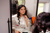 Tracie has been telling her guests for months now that “I know our venue is a little far, but I promise you that it’ll be worth it.” And let me just say, it WAS. When I arrived at Canyon Run Ranch I was blown away. There were separate areas for each side of the bridal party to get ready in, so many awesome spots for photos, a gorgeous ceremony space, and the absolute dreamiest golden hour sunset field. I made my way to the bridal suite to meet up with Tracie & her bride tribe (so much fun working with so many people I’ve photographed in the past! Truly one of the BEST things when photographing a wedding!) and started documenting the morning. We had the best time laughing and relaxing before getting dressed for the rest of the day!